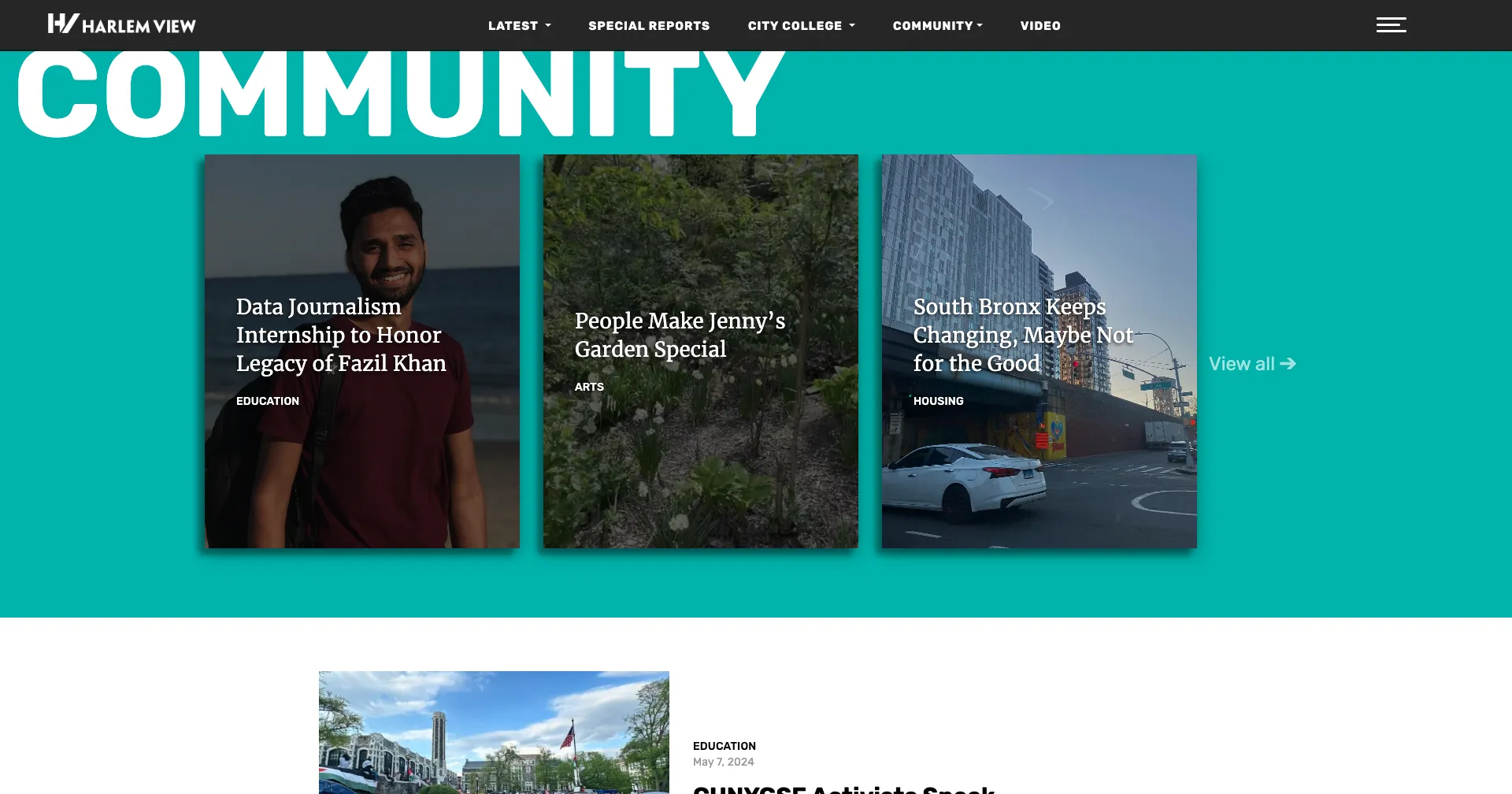 We were asked to help update & improve the Harlem View website in 2023. Harlem View is a website dedicated to news from around Manhattan and operated by the School of Journalism at the City College of New York (CUNY).