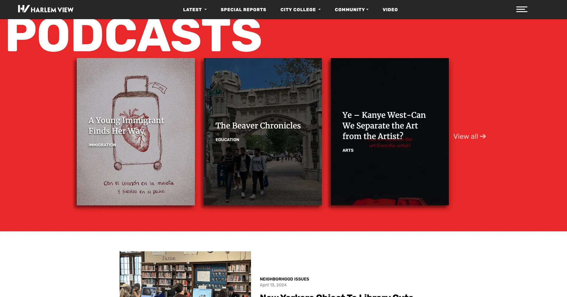 We were asked to help update & improve the Harlem View website in 2023. Harlem View is a website dedicated to news from around Manhattan and operated by the School of Journalism at the City College of New York (CUNY).